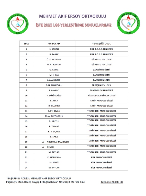8. SINIF ÖĞRENCİLERİMİZİN 2025 LGS YERLEŞTİRME SONUÇLARI