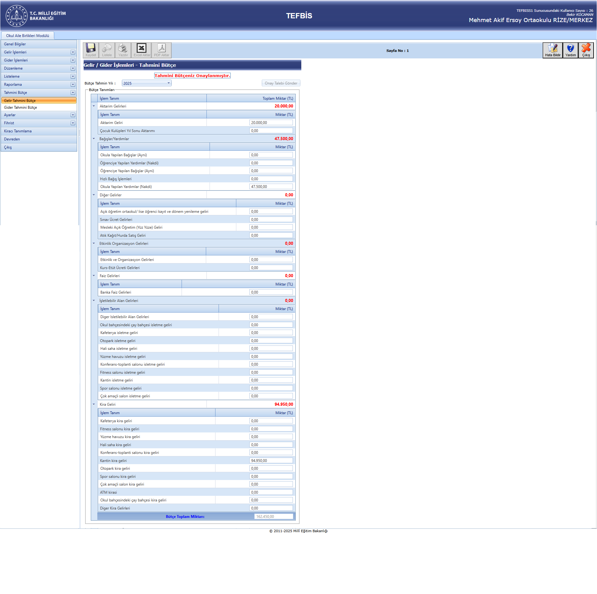 2024 2025 EĞİTİM ÖĞRETİM YILI FAALİYET RAPORU GELİRLER